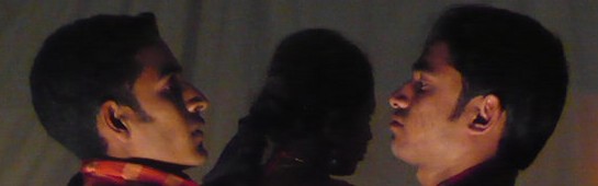 Four kinds of abhinaya (acting, or histrionics) are described - that by body part motions (angika), that by speech (vAchika), that by costumes and makeup (AhArya), and the highest mode, by means of internal emotions, expressed through minute movements of the lips, eyebrows, ear, etc. (sAttvika).